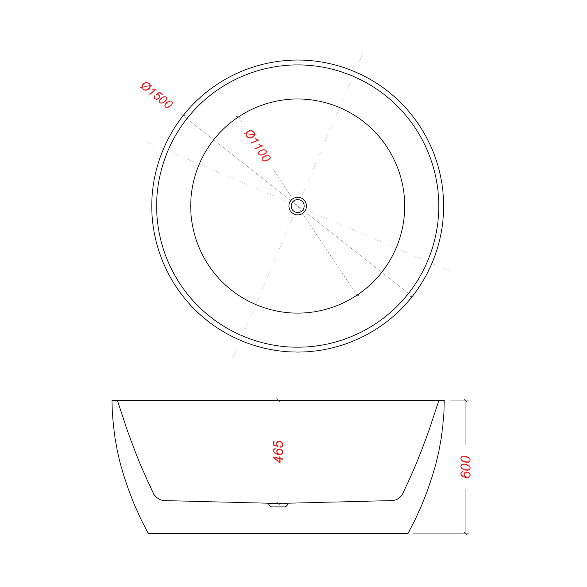 - Bathtub Size (L x W x H) 1500 x 1500 x 600 mm