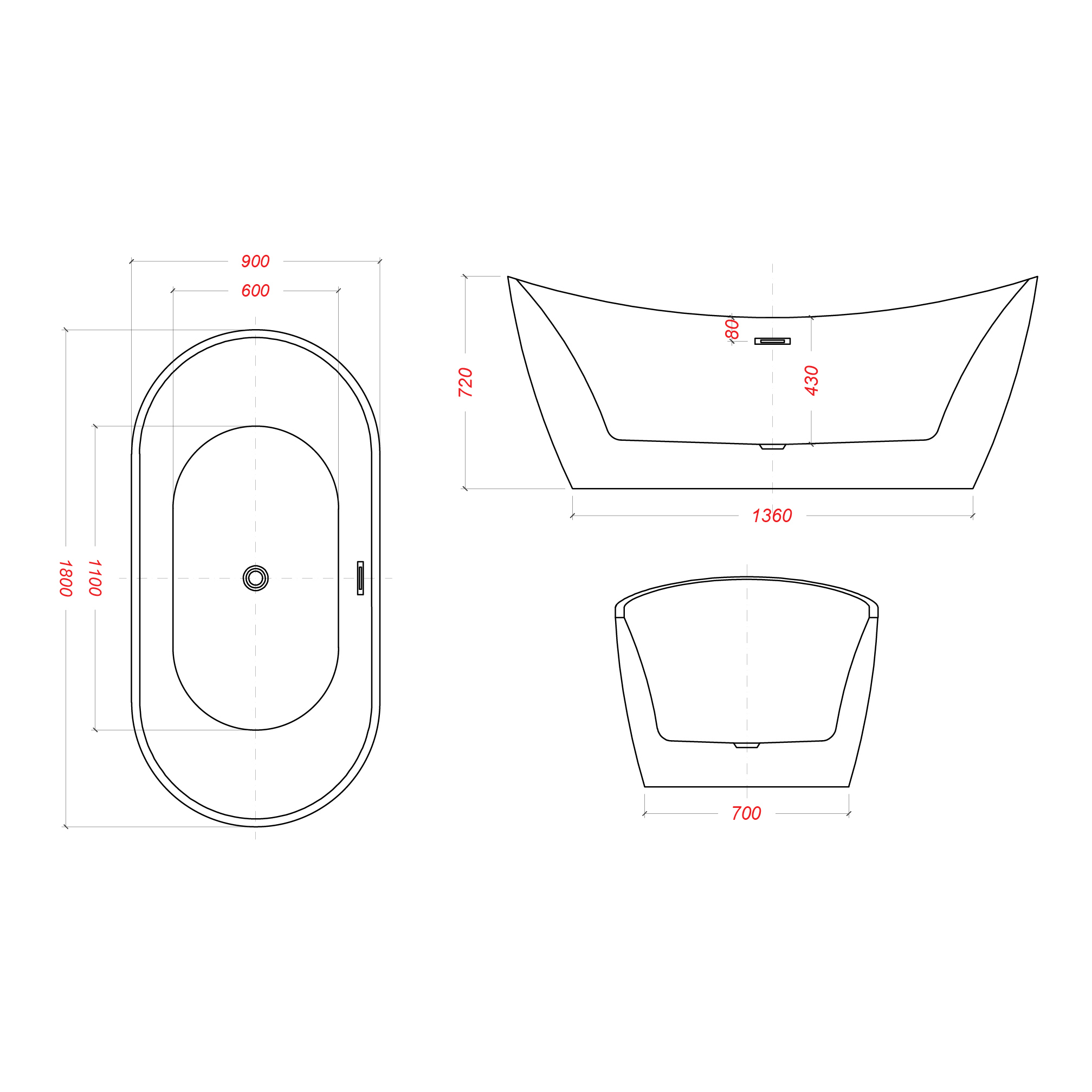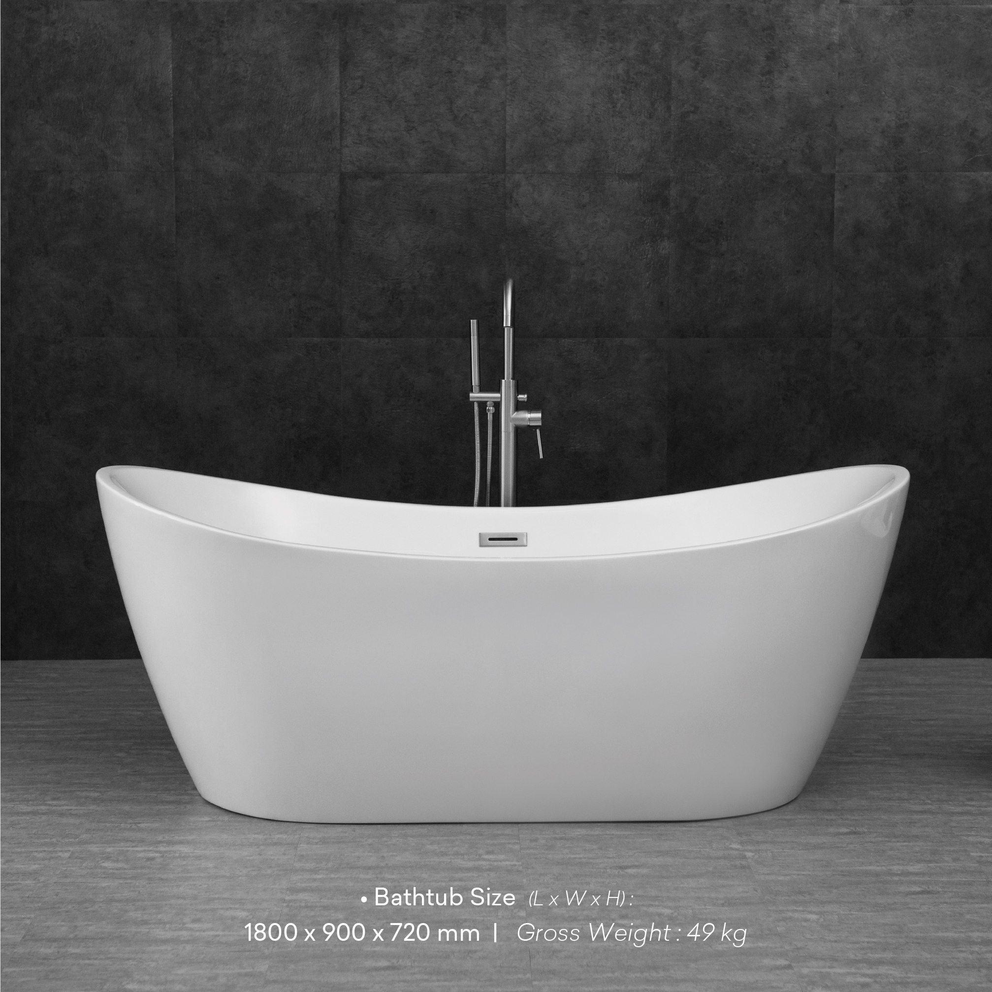 - Bathtub Size (L x W x H) 1800 x 900 x 720 mm