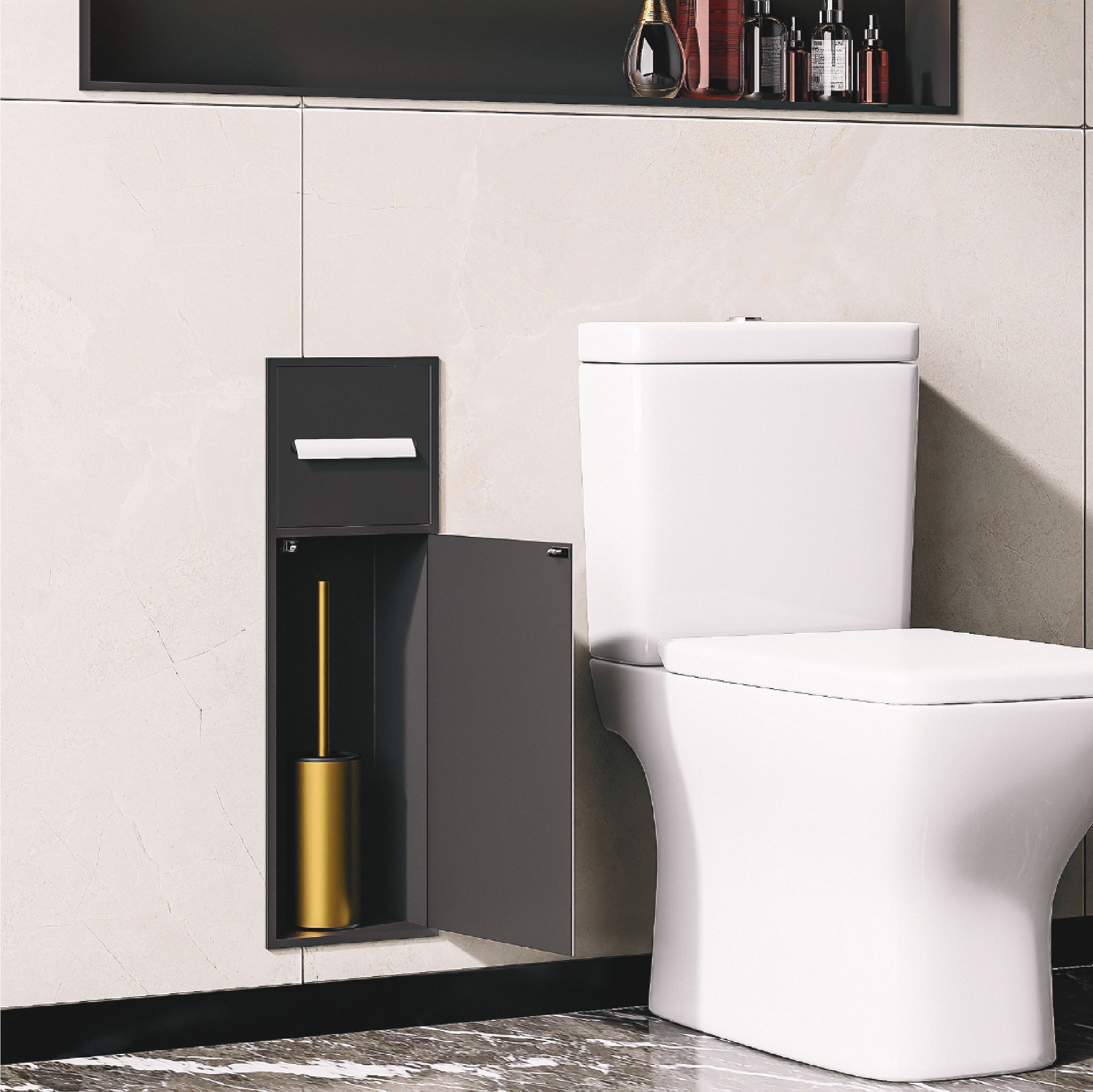 STERN KONZEPT STAINLESS STEEL TOILET BRUSH NICHE 66X20X14 MATTE BLACK YX-G660 MB